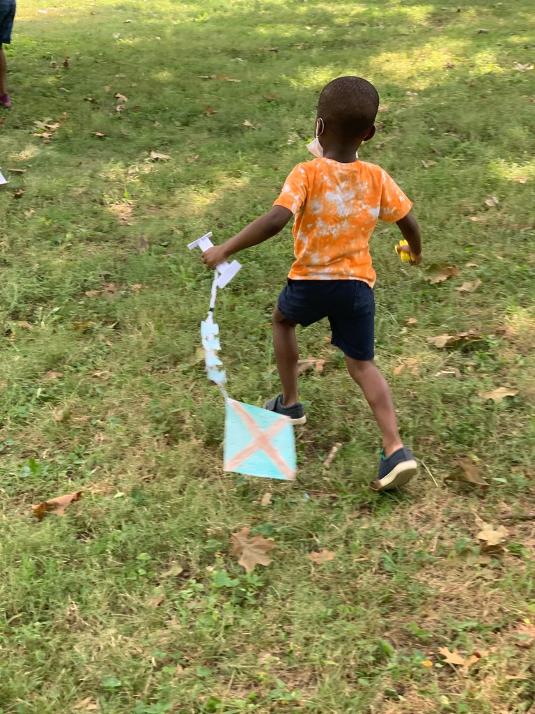 But the boys had their own ideas. How about we make our kite? I looked puzzled. It’s Sunday morning and the last thing on my mind these days, especially on Sunday is more work with the kids. I simply said sure, that means no park today. But the boys had a will and they determined to persevere. They went back to the basement location of homeschool and proceeded to make their own kites. I honestly laid in bed. About 30 minutes later, they ran upstairs with their handmade kites. All three of them had kites made with paper and they were now all excited for the park. I looked at them in awe.