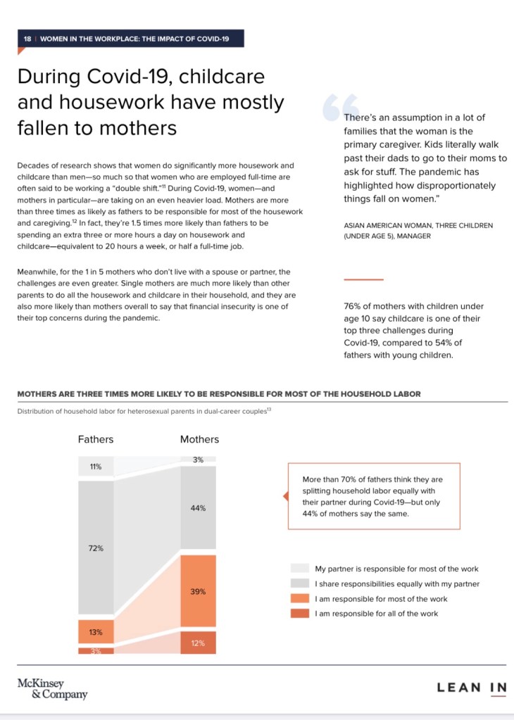 Motherhood is accessible, familiar, common, trivial and very recognizable. The ongoing Covid-19 pandemic makes motherhood noticeable. According to a recent 2020 report by Sheryl Sandberg’s Lean in Foundation entitled Women in the Workplace, ‘working mothers are at extraordinary risk of being penalized during the pandemic. Everything mothers need to do right now to both work and care for their families makes motherhood much more noticeable.’ So much so that, ‘1 in 4 women are looking to quit or reduce work because of Covid-19.’ I can relate!