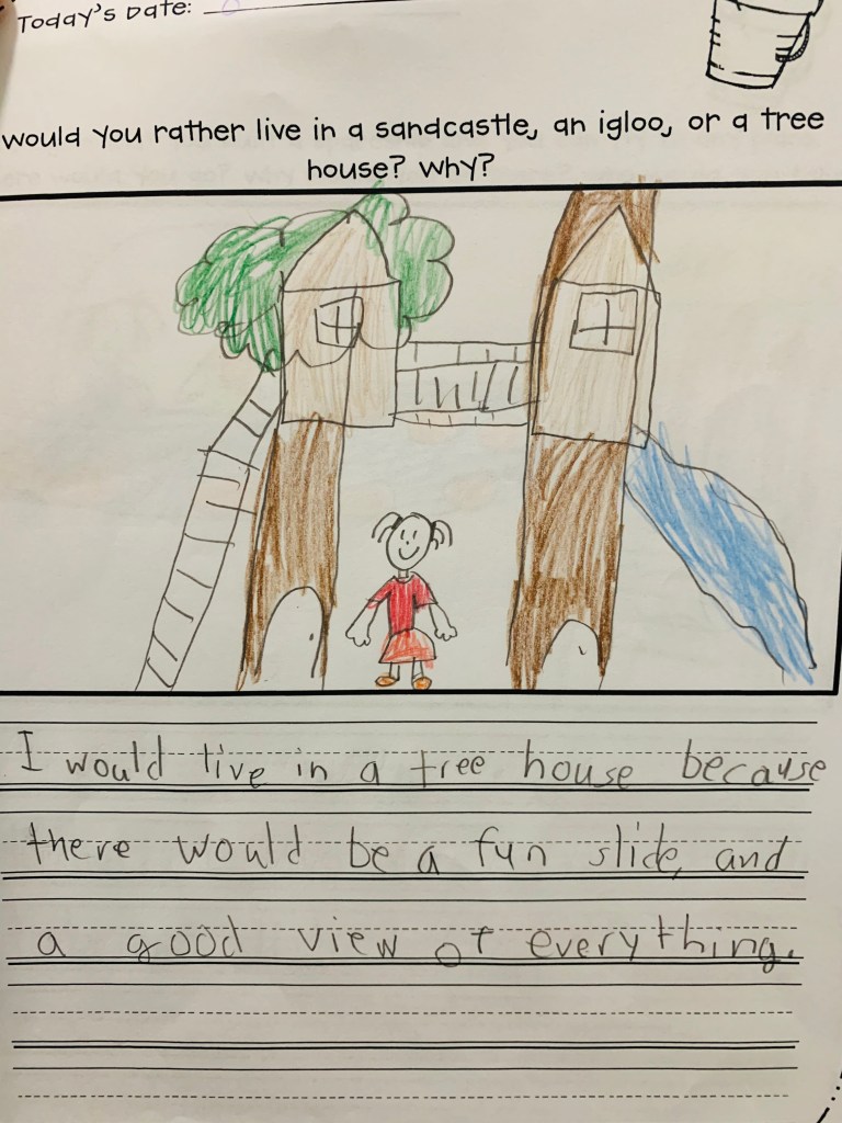 Reading my daughters journals this school year have been gratifying. The floodgates of her imagination seem to open up every time she journals. Watching her unlock her potential every time she writes has also been quite stunning. Whether it’s her thoughts on ways to be a good friend or why she would rather live in a tree-house instead of an Igloo or a sandcastle, I see firsthand how crucial it is to ensure that children write. Her curiosity and creativity with every journal entry helps to maintain her propensity to inquire and learn in profound ways even now as a 3rd grader. She would live in a treehouse by they way, as it would have a fun slide and allow her to see or have a good view of everything. That by they way is why writing as a child matters. It fosters inquiry. Keep encouraging it.