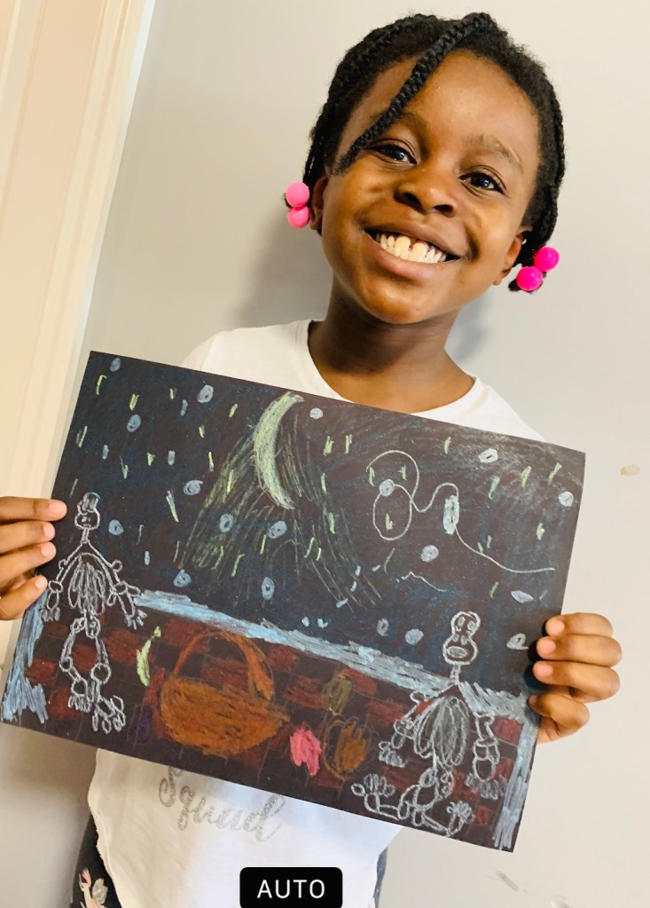 My daughter’s artwork helped me to rethink the subtle yet pervasive attachments we may all have to the fabric of motherhood. The need to think about what it means and what it takes to do both, work and motherhood, effortlessly, defiantly, with struggle in many cases and but a rugged ease in some instances. Just today, I not only reviewed four NIH grants in need for funding as a peer-reviewer, but I managed to put on a home-based Halloween party, albeit for four children, while also watching a movie that celebrated my daughter’s art assignment.