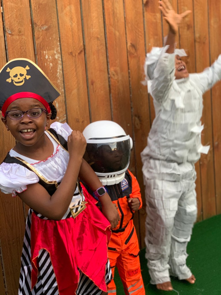 But learning, all forms of learning that has occurred during this period of schooling at home is one of the greatest gifts my family and I have received as a result of this global pandemic. Learning for us is a gift, part of our natural existence not restricted by any curriculum or any agenda. Not a forced activity imposed by any professional or occurring in isolated spaces. Learning, unapologetically realized, recognized, is done everyday at home, insides spaces without walls, through lens never needing to be closed, from the pirate stories, to astronaut goals or even scary mummies all for example, for Halloween celebrations yesterday. Learning for my six year old for example, occurs through interactions with his siblings on a daily basis, something formal education would have restricted or curtailed by now. For him, it’s in the way he politely asks for his turn. That’s all. Interaction is a big developmental task for him and the opportunity to learn at home has instilled asking politely for his turn with a laptop, a book, even the last piece of chicken on the table. He politely asks before proceeding to do anything.