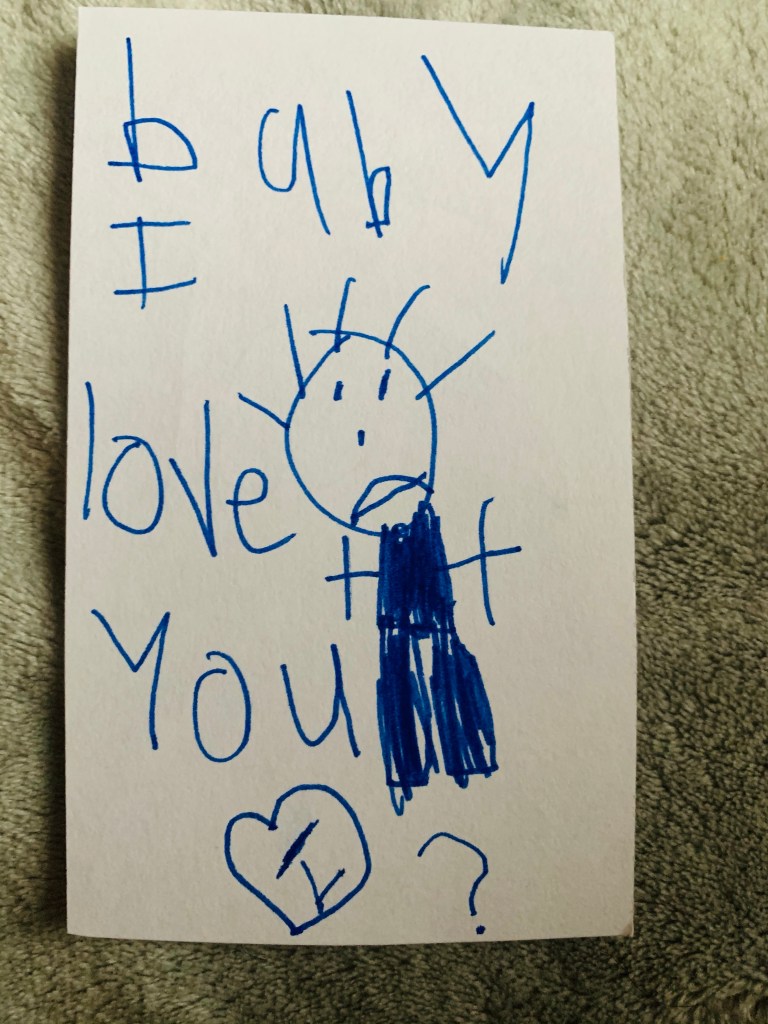 One of my sons rarely has time for small talks. Except if it involves planets. He also rarely gets emotional. Except when he is crying for something missing. When he becomes vulnerable, especially when he becomes profoundly into you or something that absorbs his mind, he becomes an emblem of empathy, a tower of sincerity, a pillar of love. The other day he found my small purse with notecards and colorful pen and proceeded to make something he said, for his baby brother. A card of sorts. When he was done, he gave it to him, smiled and walked away. Baby barely knew what it was. I looked at it and smiled too. The message was simple. But if you know this son, if you remember how he rarely gets emotional, you will also understand how special and timely his message was. It also warmed my heart. Keep telling those around you how much you love them. The world truly needs love. Do your part to also keep spreading love, your own way, and especially through cards you draw by hand. It warms the heart. Keep also knowing that you are loved. You. You are loved.