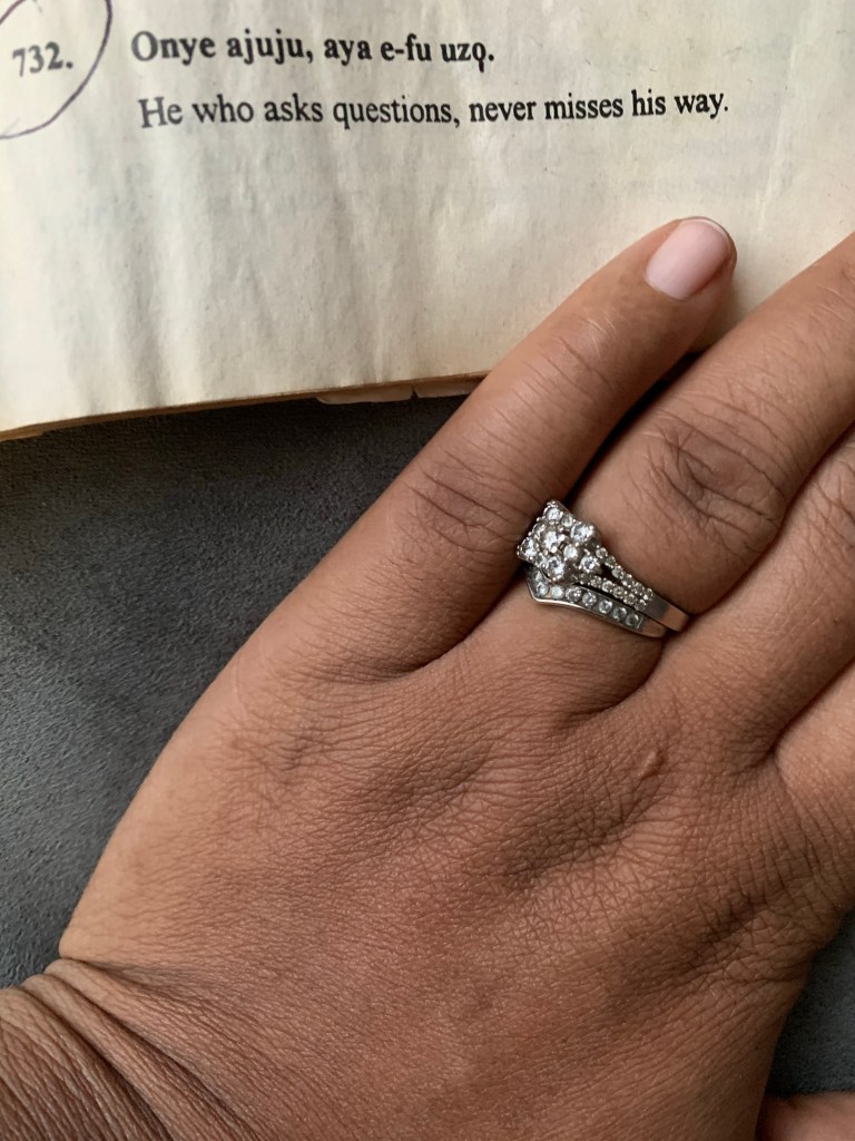 We all know the value of questioning in the classroom, but what about at home. How might we foster the joy of questioning in our households and with everyday activities? How might we encourage questions to naturally arise in our children? Or how might we train our children to ask questions in the way we potty train them? How can we help our children use their questions to seek knowledge, explain things, or understand a phenomenon? How can we simply foster opportunities for our children to ask more beautiful questions, including questions of things they want to know, things they are curious about or what they themselves see as important to discuss, whether it’s Christmas or a pandemic? I was inspired by this keep and the need to continue to work to hone my children’s questioning abilities after seeing a 1995 book in my collection, of 1001 Enuani (an Igbo dialect of Nigeria) proverbs during a cleanup around my home. I scrolled through the pages and landed on proverb 732, my all time favorite proverb in this book and one I have used in a speech to Bucknell undergraduate students about the significance of questions back in my grad school years.