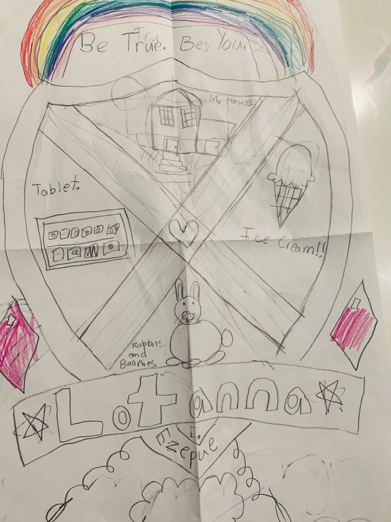 The enterprise of being you, a complete individual, unique in your own way and in your own thoughts starts with being complete. I am complete on my own and in my own terms. This is the lesson for today. Keep being complete. It’s a lesson I learnt after looking at an assignment my daughter completed for school. Her teacher asked her to make a coat of arms, something to illustrate what makes her completely unique, in her own way. My daughter focused on four words: Be True, Be You. I smiled. She is indeed my child.