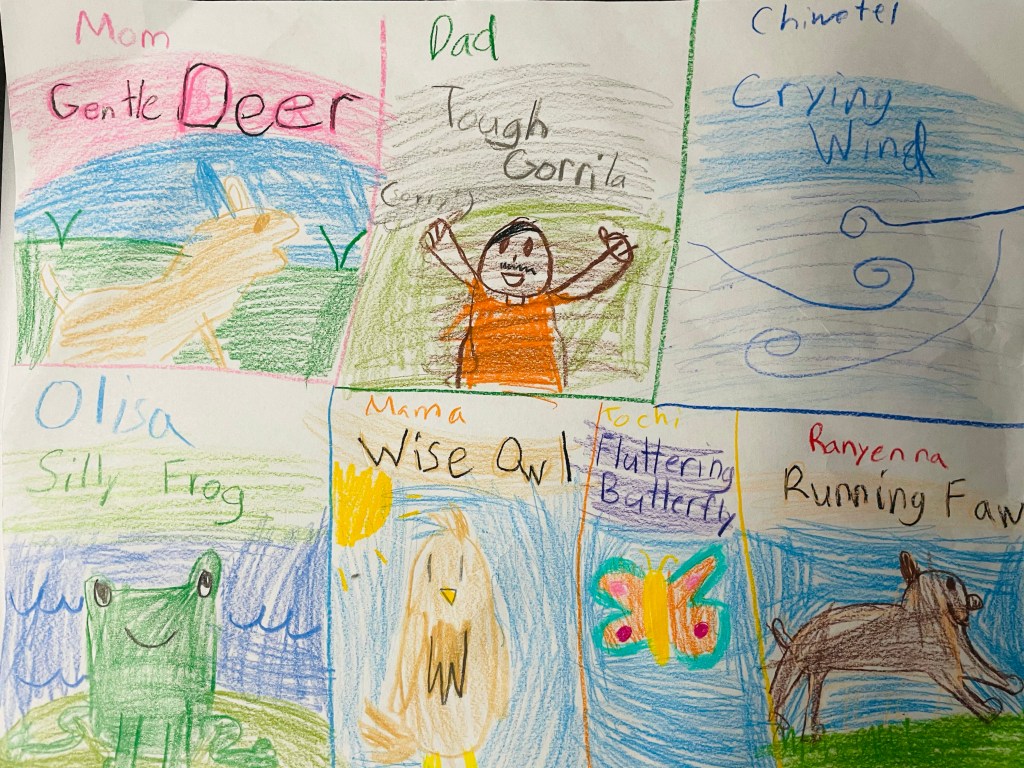 Imagine the wind, crying, with a wise owl staring maybe at a gentle deer or a tough gorilla. A running fawn, playing next to a fluttering butterfly with a silly frog, acting well, silly. Imagine all of this combined together as a story. How our brain combines elements, whether a crying wind full of wise owls, to form a creative activity, is called imagination. My 8 year old daughter is full of it. In a recent assignment for school, she was asked to imagine Native American names for her family member. Every name she gave, brought her love and understanding of Native American culture to the forefront. It’s almost like she understood for example, why mom would be described a gentle deer, or grandmama, a wise old owl. Imagining these names in words and art form, became a meaningful and necessary task for her, one that I intend to help her keep. Imagination, even with something as simple as thinking about names that vividly represent her family members, combines more skills than other task. It is through her imagination, that her creative self is brought closer to life.