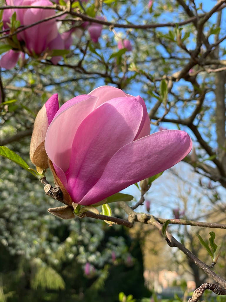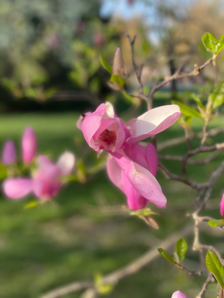 Lily magnolias I can tell will be my favorite for there is much to learn about them. For starters, it’s a small tree native to China but planted not just in China, but Japan, some countries in Europe and in the USA. Though they maybe battered in the fall and winter from strong winds and very cold temperatures, they emerge in Spring as beautiful as can be with colors just as bright as the dazzling sun. Because I didn’t know their value, we didn’t water them through the fall or winter, as they need to be watered regularly. We only pruned the hedges that had grown all around them when the prior owners moved out of the home over a year before they sold the house. We pruned them due to advice we got from others and let them be. Judging from how they are thriving now, that maybe all they need, though we will now incorporate water for the future. Still, they are just as glorious as can be with a truly mesmerizing elegant appearance. They are visited primarily not only by beetles but also by bees, something that drives my kids crazy as they hate to see them. I on the other hand love to see nature at its best. To see such a sun-loving flower at the back of our home keeps my joyful and hopeful for all the possibilities nature has to offer, if only we do our part to tend to it. It’s for this reason that I liken lily magnolias to motherhood.
