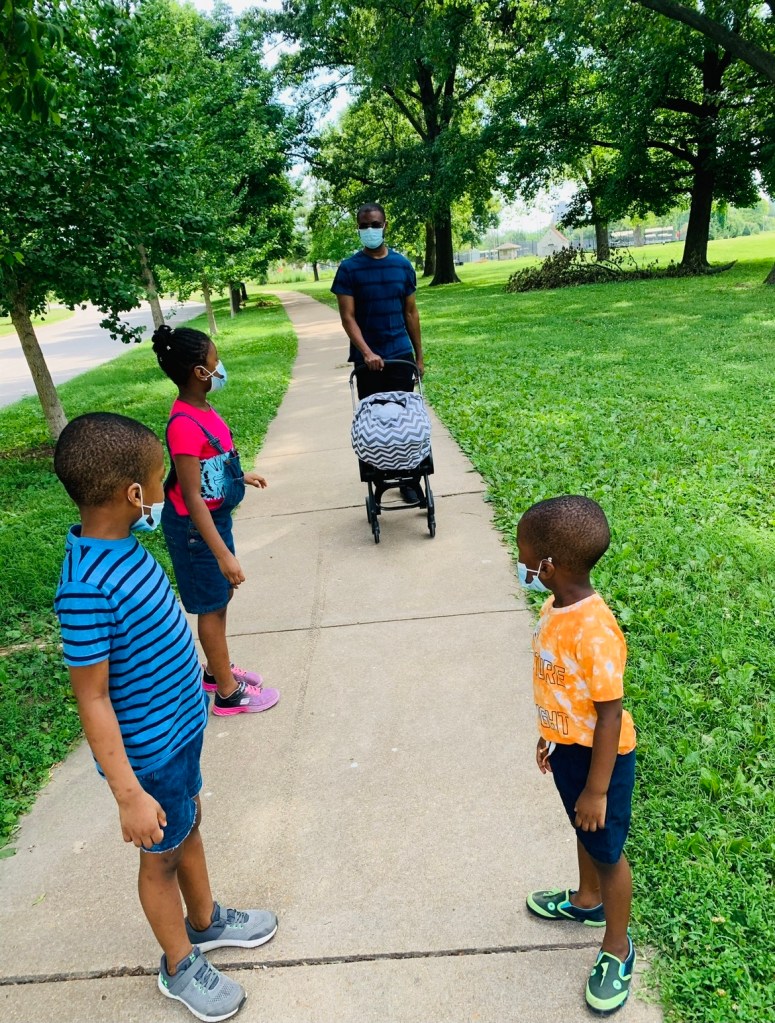 My daughter in her blue denim overalls tried to tell him about the world as we walked along Forest Park. She played I spy with her brothers, spying things they saw along the way, like something green such as all the trees and grass along the Park, or something brown like dead leaves along the path, or something blue like the clear blue skies that brighten our day as we walked along the Park. Their spying game while walking, it’s meaning and value, were never lost on me.
