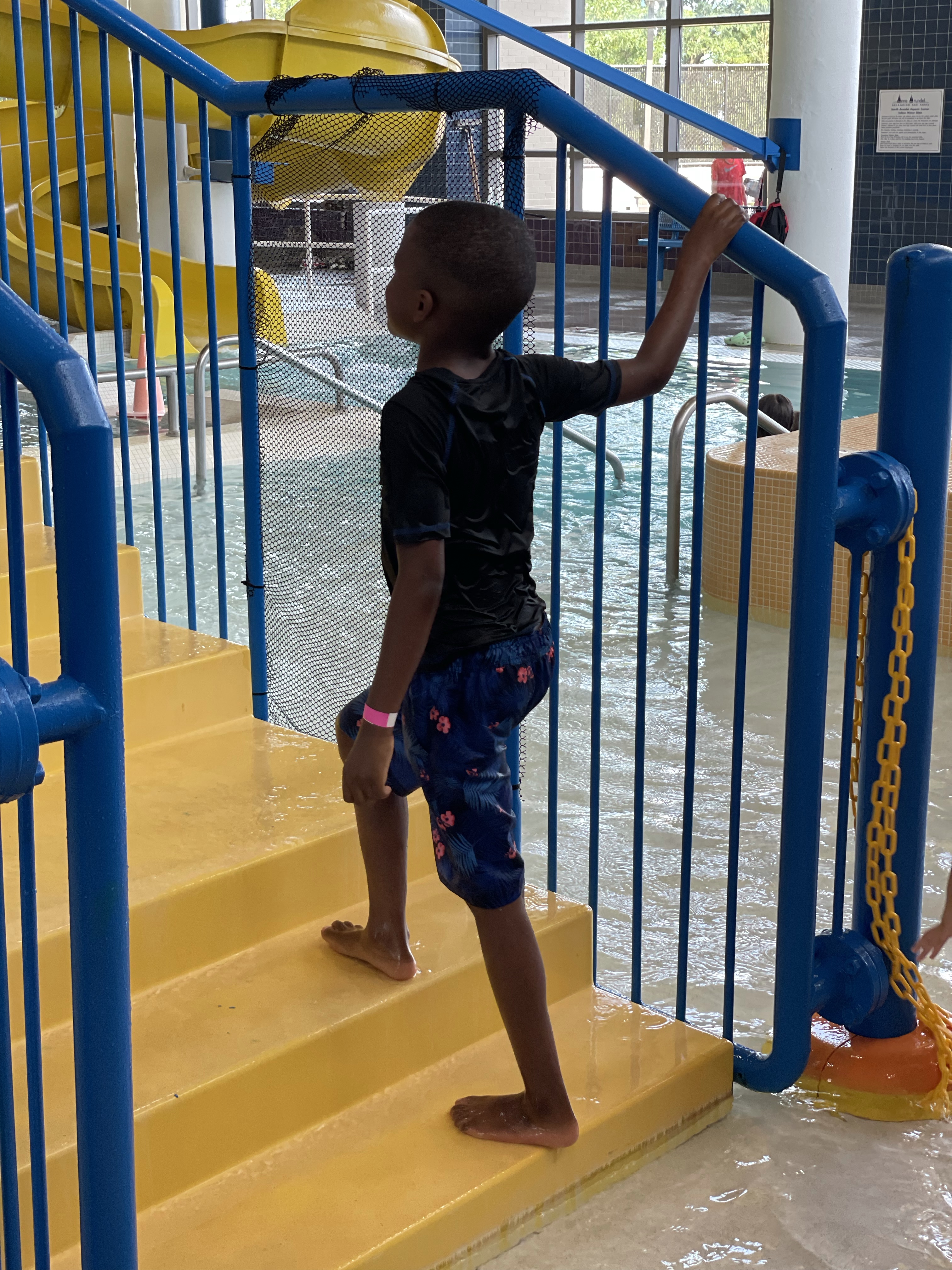 We got dressed. He wore his favorite blue swimming shirt and pants. The words fortnite in a camo print were written on his shirt. Praying to not rewrite history still kept me alert. I watched as he gently made sense of all the water around him. I did so watching his other siblings too, better than any hawk would too. His sister went up and down a large yellow water slide. His little brother found joy up and down a red water slide. My son stood next to the water dripping down in a progressive style next to the water slide. The twirling water from little spouts seemed to make him joyful and surprisingly gentle.