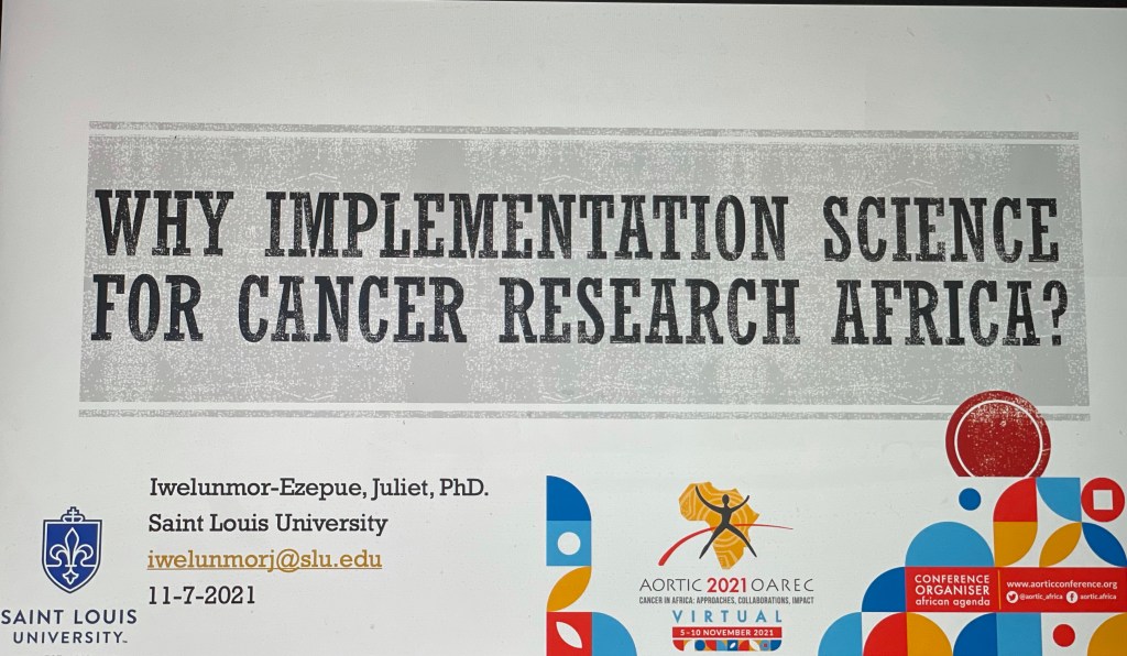 I presented at the 2021 AORTIC Cancer research in Africa. There was a pre-conference the past two days and I was asked to lead this morning with a discussion on why implementation science research for cancer in Africa. What many people do not know was that the invitation which came July 12, came exactly one month before my sister in law passed August 12. I took it as her parting gift. She knows I love to talk. She also knows that I do research, implementation science research in Africa. But I have never done Cancer work. Never even felt it was my place to do so until her cervical cancer came knocking at our door steps. The preparation for the presentation has been one giant healing process for me. I literally wrote poetry, yea or maybe verses on ways to disseminate cervical cancer research using her experience as an entry point. I was so tempted to do so at the presentation that I opted out last minute. Not because I don’t think they were great and I will publish them here one day, but more because ours is still a very conservative field and the idea of decolonizing how we present research or even saying anything anti racism scares people, though I am working on verses for research. But I digress. For now, here is the standard presentation I gave and yes, I gave it in her memory as stories still, to help guide those who want to fight like hell so we don’t have to tell anymore stories like Angie’s.