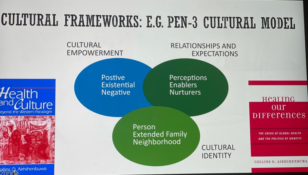 Professor Collins Airhihenbuwa, my mentor, over 30 years ago, developed a framework called the PEN-3 cultural model, which helps to situate some of the work many of us do in the region, and it asks that we begin always by interrogating what is positive about our context, what is existential or unique about where we find ourselves, and then ultimately what are the hurdles, or challenges to be mindful of along the way, and for me the past few days of listening in, has allowed me to see first-hand, that the leadership within Aortic, in fact all they have done with setting up this conference, is the right start for tackling cancer research in the region.
