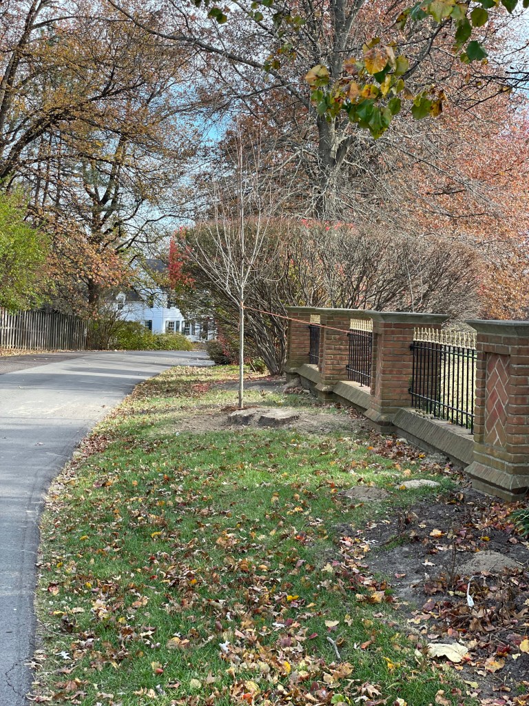 The day before Thanksgiving, we planted a new tree near the spot where the old tree came down. It was a gift to my husband from his coworkers for the death of his sister, our dearest Angie. I called back in October to let the company know the type of trees we would love. They recommended a tree whose name I cannot remember but promised its leaves would be red in the fall. I accepted and agreed to their selection. He noted they would come in November to plant the tree as this Fall is typically the best time to plant trees. He noted they would go to sleep anyways and wake up in time during spring. On Wednesday, our sleepy tree arrived. As we watched them dig deep into the earth, I realize just what I am truly thankful for this year. Life and Grief.