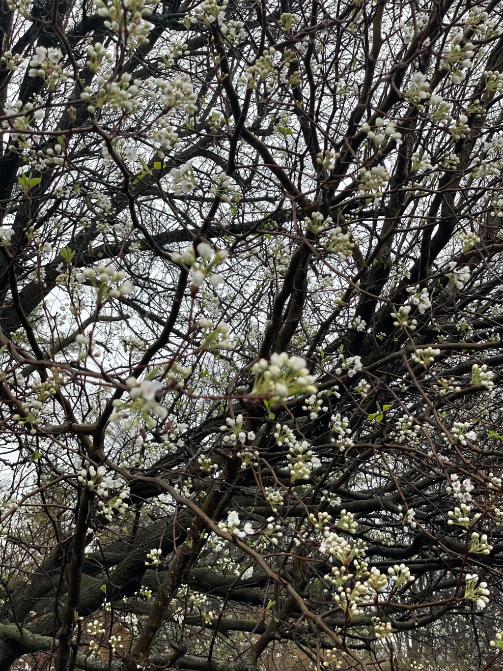 I hear you are very persistent. Prone to reinvade even when removed. I hear you are highly resilient. Thick dense branches push out others who compete with you for water, soil, space, sun. I hear some call you invasive. Birds love your fruit, spread your seeds and you rise up unbidden again. But I see you bloom in spring. Early spring in clusters of white rounded flowers that stay close together. Like us. We may be persistent, resilient, invasive even, but still, like callery trees, we stay close together, blooming together.