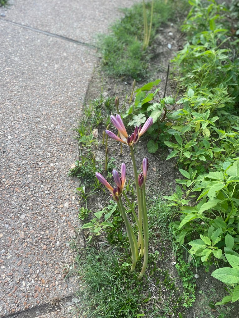 Rain or sun, they grow on their own. With seeds producing flowers in three years. Today, I was greeted by flowers that took three years to bloom. Three years to bloom.
