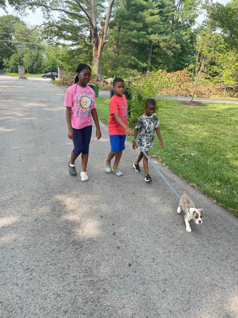 Igbo people say that Nchekume ka o-li-li or in other words, that which you hope for is more important than eating anything. So long as you keep hope alive, eventually that thing you wish for, will come to pass. At the beginning for summer, I took my kids to a dog park. We walked for close to 2 miles, admiring so many dogs we met along the way. They sighed and cried everytime I had to force them to part away from the dogs. While I was out of the country 2 weeks ago, their dad took them to another dog park. The same thing happened that as of yesterday we became the owners of an English Bulldog named Simba. I still don’t know what we signed up for. We are learning with each passing hour that dogs, especially puppies are like new born babies. Today we taught Simba how to go for a walk. He resisted and resisted at first until he found joy in it. We still have miles to go and yes I have signed up for a puppy training class which begins on Wednesday. They say that which you hope for will definitely come one’s way. I see it with my children and their dog named Simba. Keep hope.