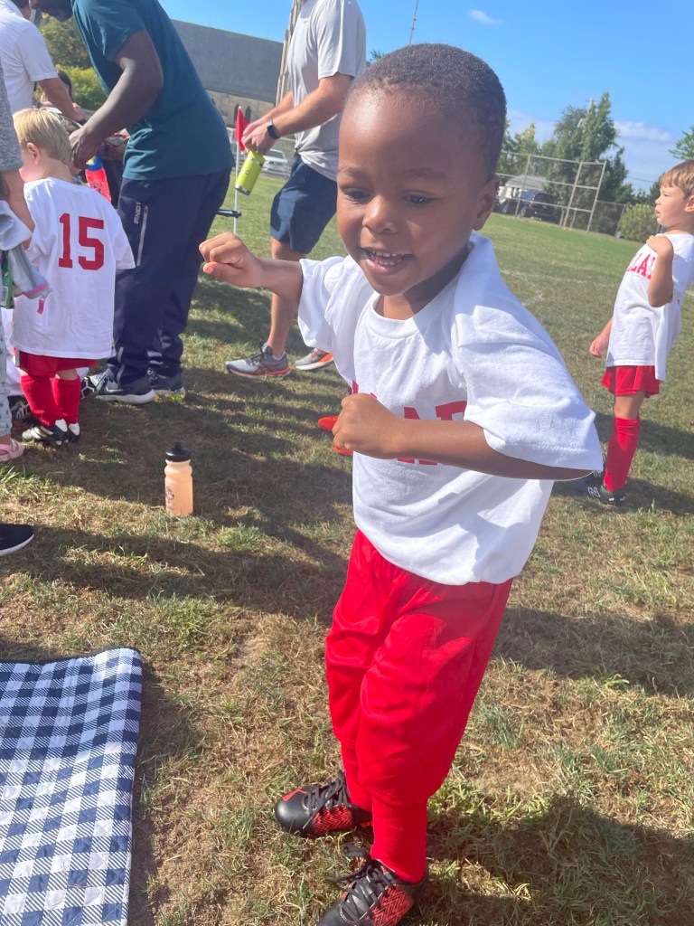 Soccer season started yesterday. My baby started his first game confused about this sport. At first he sat down with his teammates and watched as they got up and went to the field. Then it was his turn and he was asked to join them in the field. The coach asked if he would kick the ball and my son looked at him confused. Then another kid started the game and off the rest of the kids went chasing the ball. My son stood where he was uncertain about what was happening. I told him to run along with the rest and chase the ball. He smiled but still stood where was. The kids ran up and down the field, while my son stood there really not understanding what was happening. Then the coach tried to get him to go sit down so another kid would play and my son refused to leave the field. I literally ran into the field to drag him out and when we got to where the other kids were sitting he was still struggling with me to go back into the field. I was confused. First , he was allowed to play, yet he did nothing. Next, he was asked to leave and he insisted he remained. Then when he left, he still wanted to return to the field even though we all knew he would end up doing nothing. I eventually took him to the side of the field and gave him a spare ball to play with.